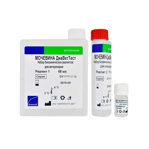 Набор биохимических реагентов для ветеринарии Мочевина ДиаВетТест предназначен для определения активности мочевины в крови животных.