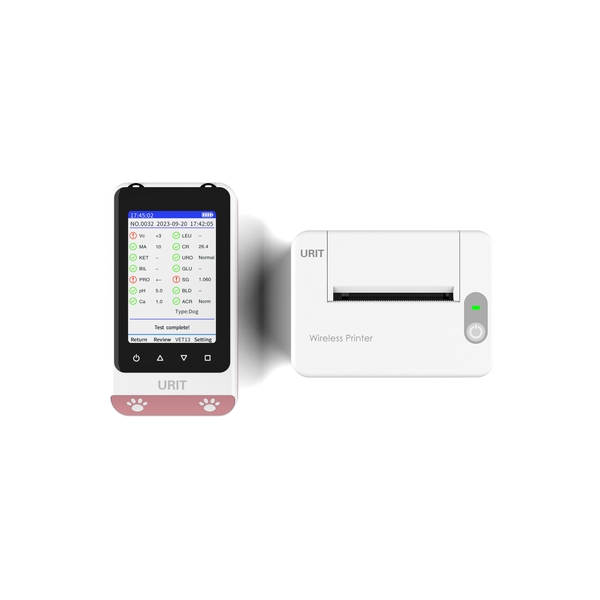 Портативный полуавтоматический мочевой анализатор URIT UC-32Q VET подойдет для небольшой ветлаборатории или ветеринарной клиники с низким потоком анализов. В комплекте — внешний термопринтер.